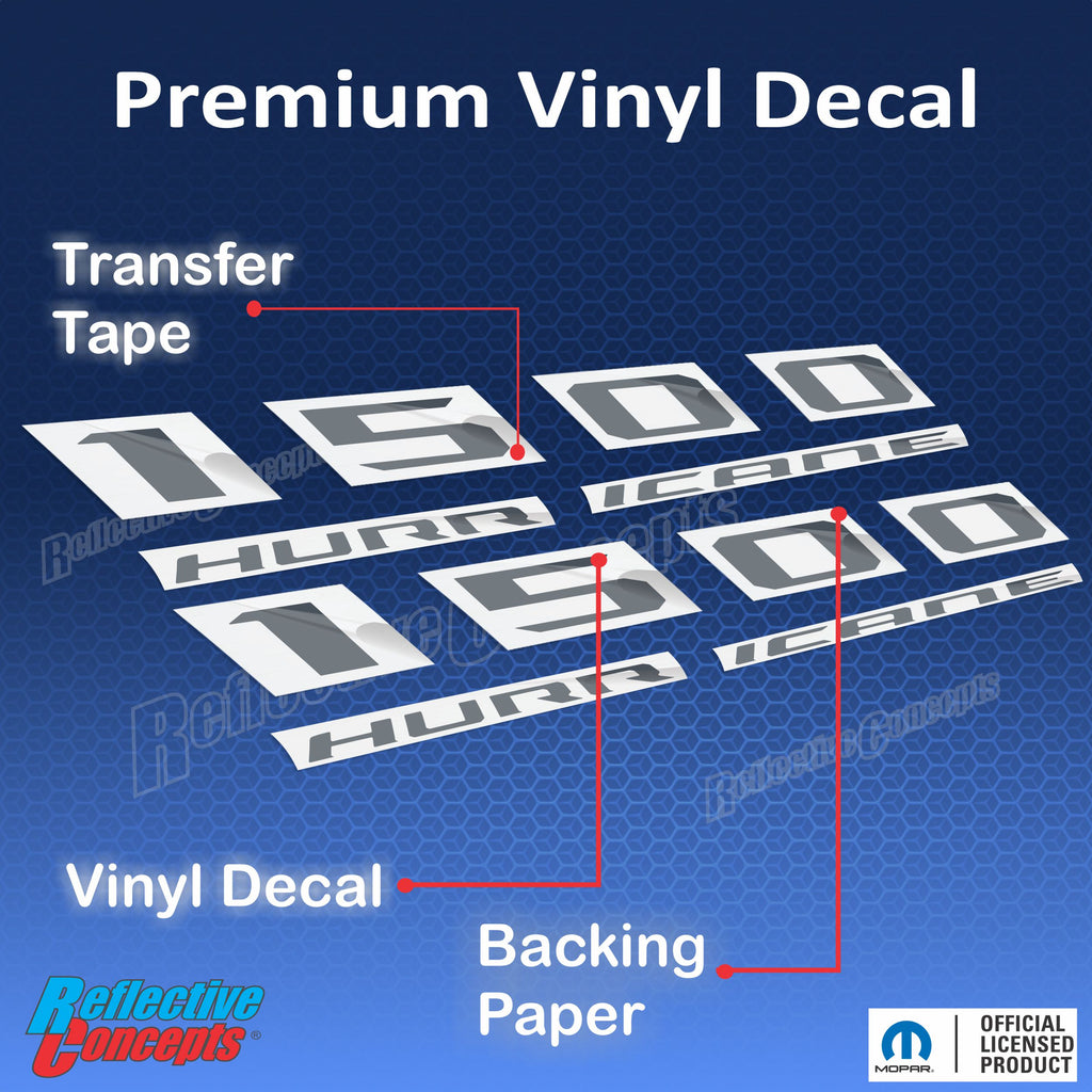 Vinyl decal stickers sized and designed for the 1500 HURRICANE Sport Performance Hood emblems.