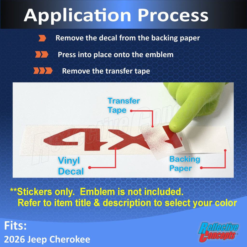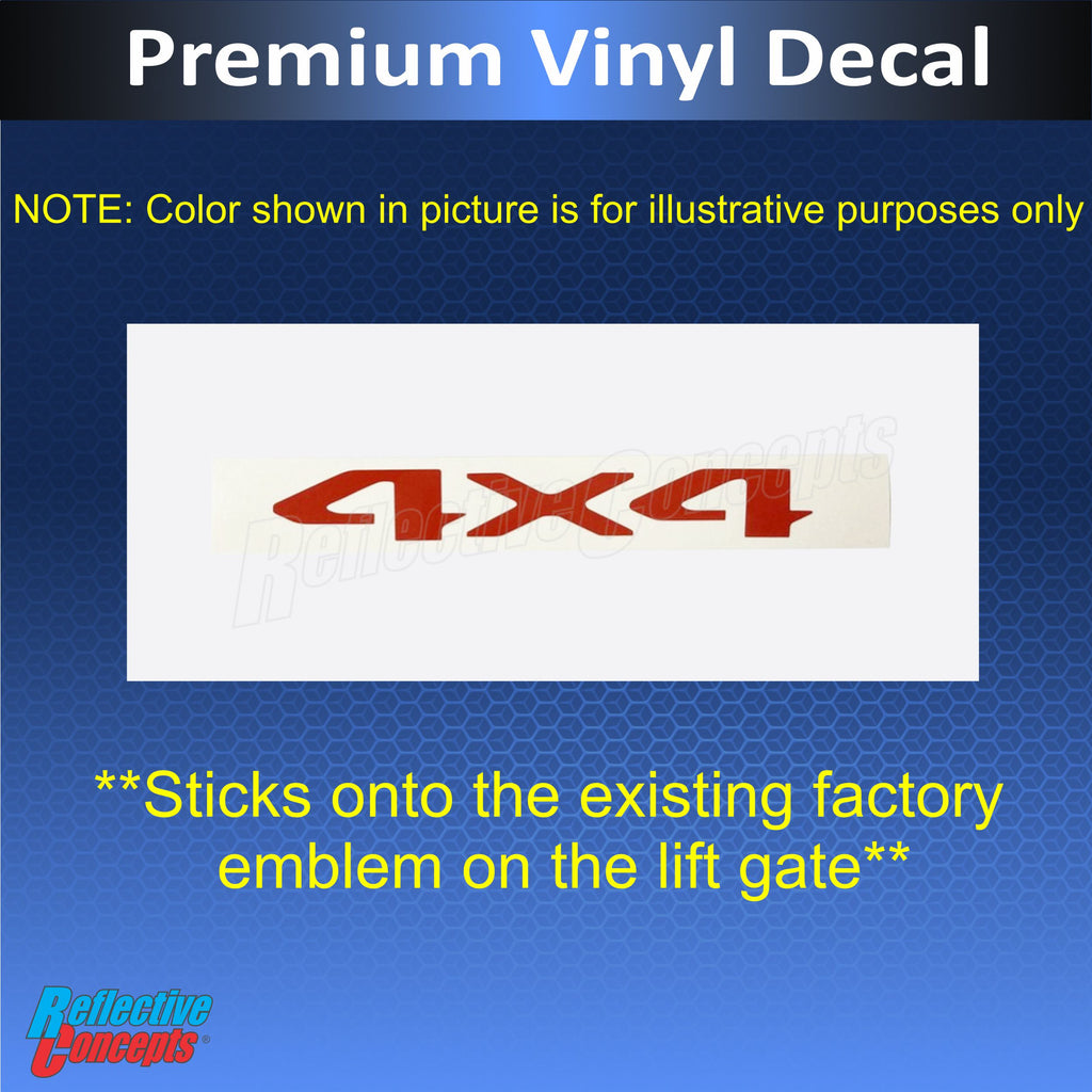 Vinyl decal sized and designed to overlay the flat front face of the 4X4 emblem on the lift gate.