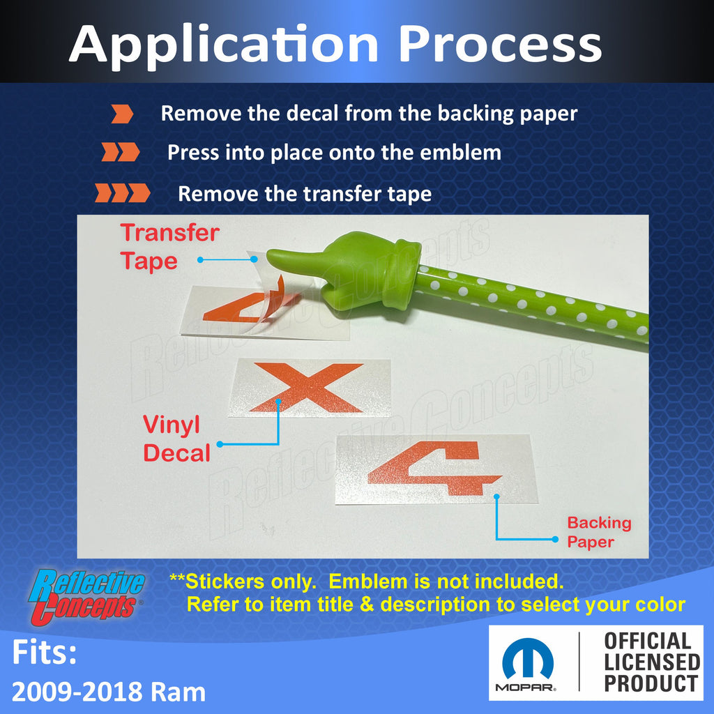 Vinyl decal sized and designed to overlay the flat front face of the 4X4 emblem on the tailgate. The bevel around the edge remains exposed.