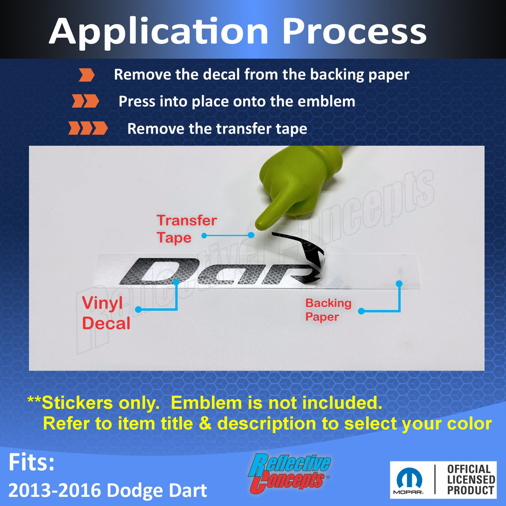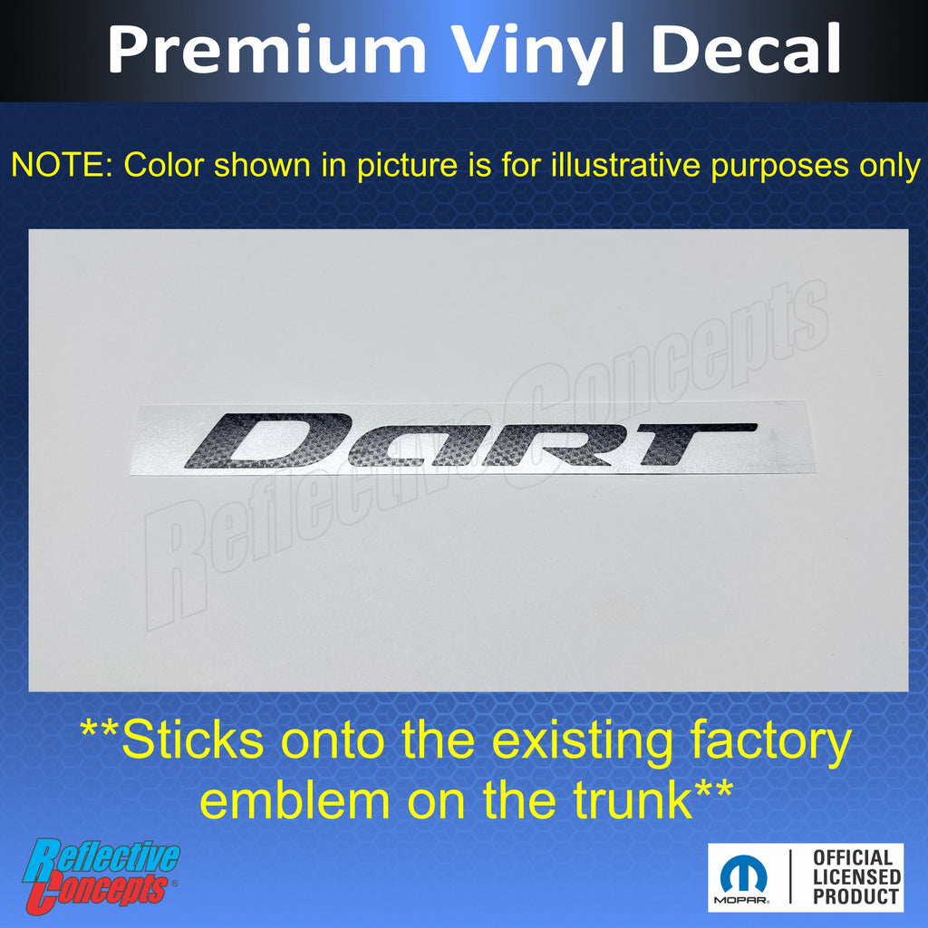 Vinyl decal designed to overlay the front face of the DART emblem on the trunk lid.