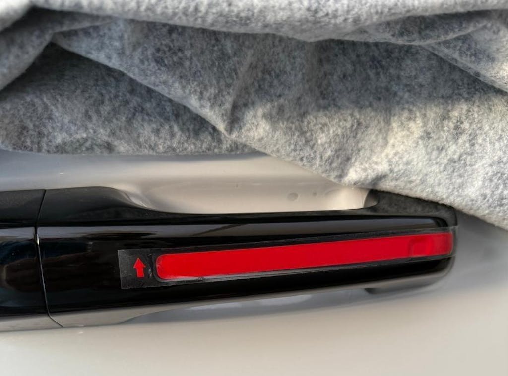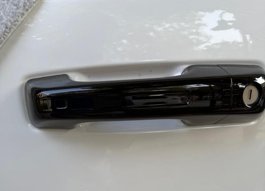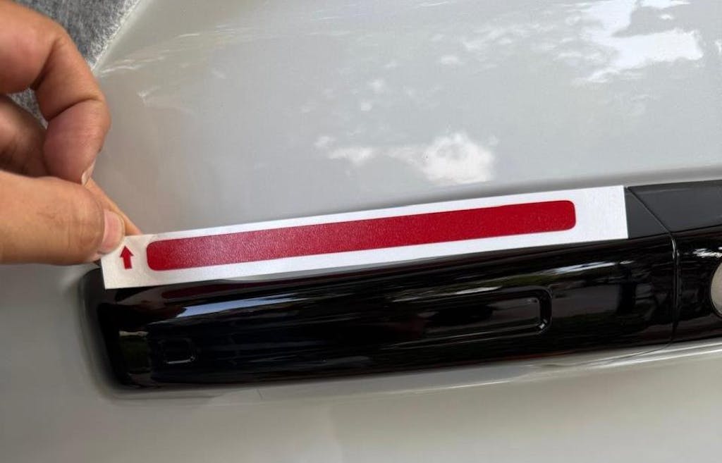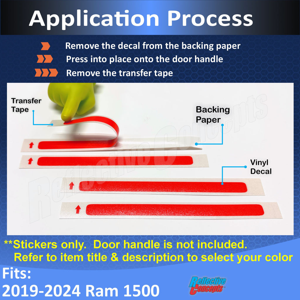 Vinyl decal designed to to be applied into the indentation on the four door handles.