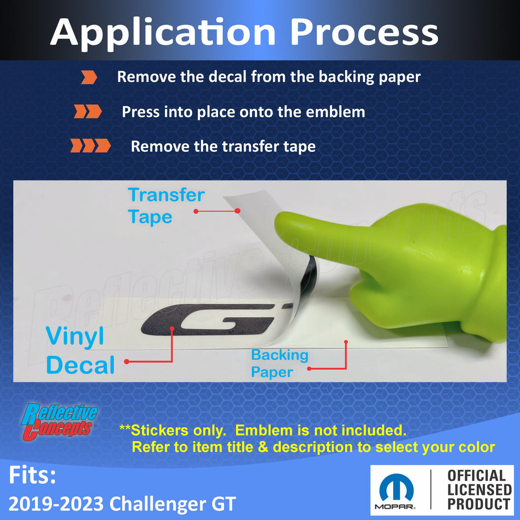 Vinyl decal designed to overlay the front face of the GT emblem on the grille.