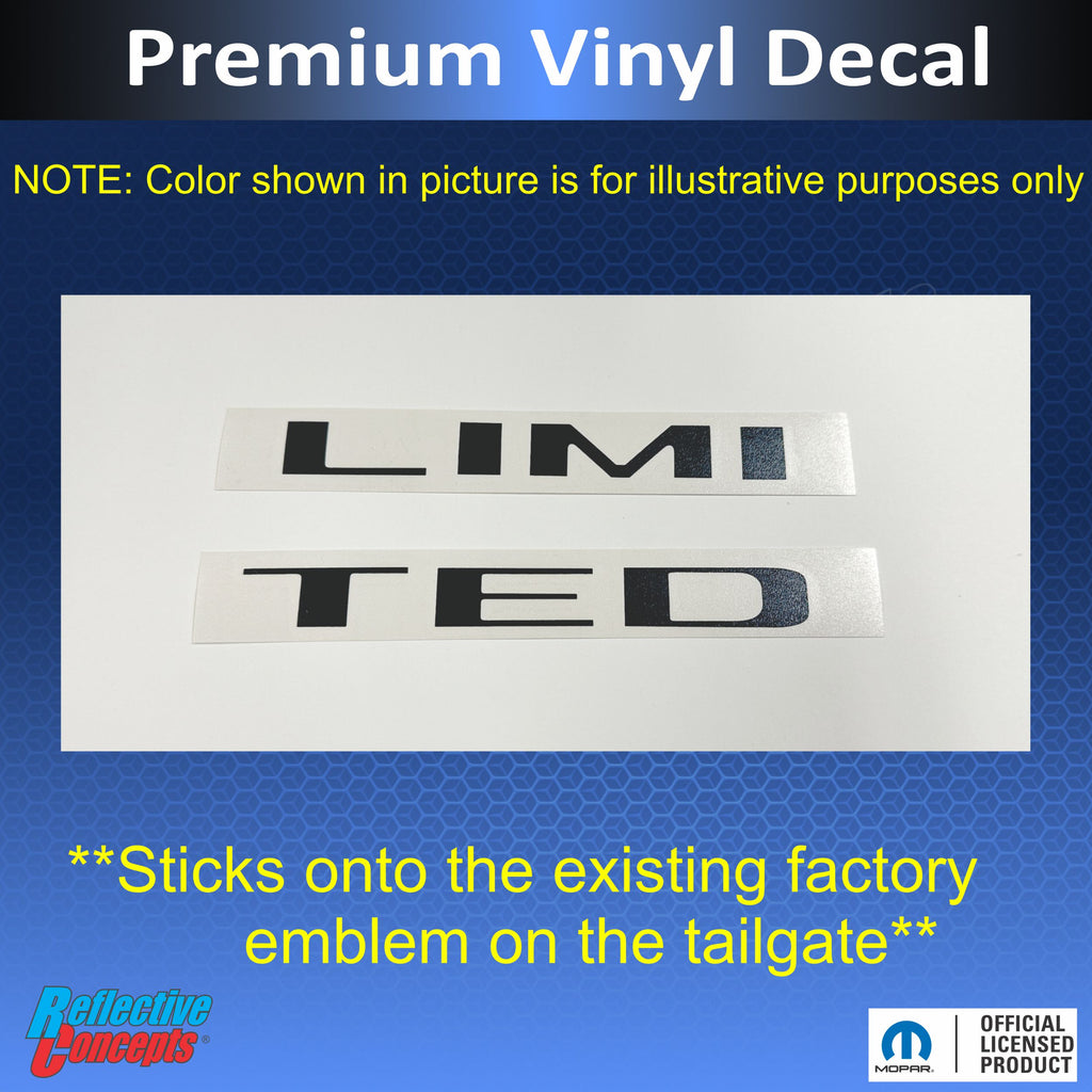 Vinyl decal sized and designed to stick to the top of the existing, factory LIMITED tailgate emblem. The chrome around the edges remains exposed.