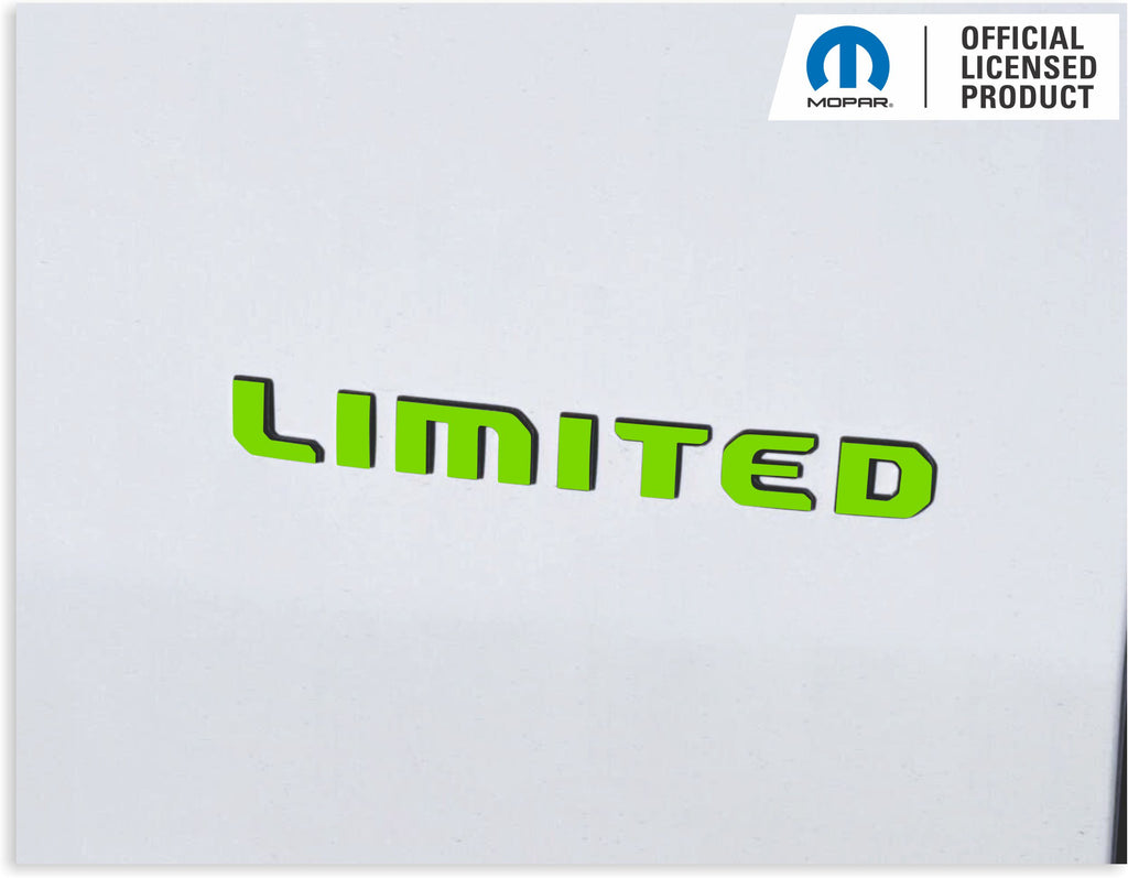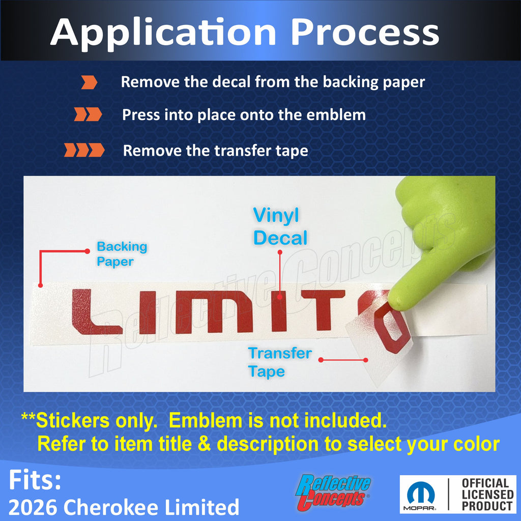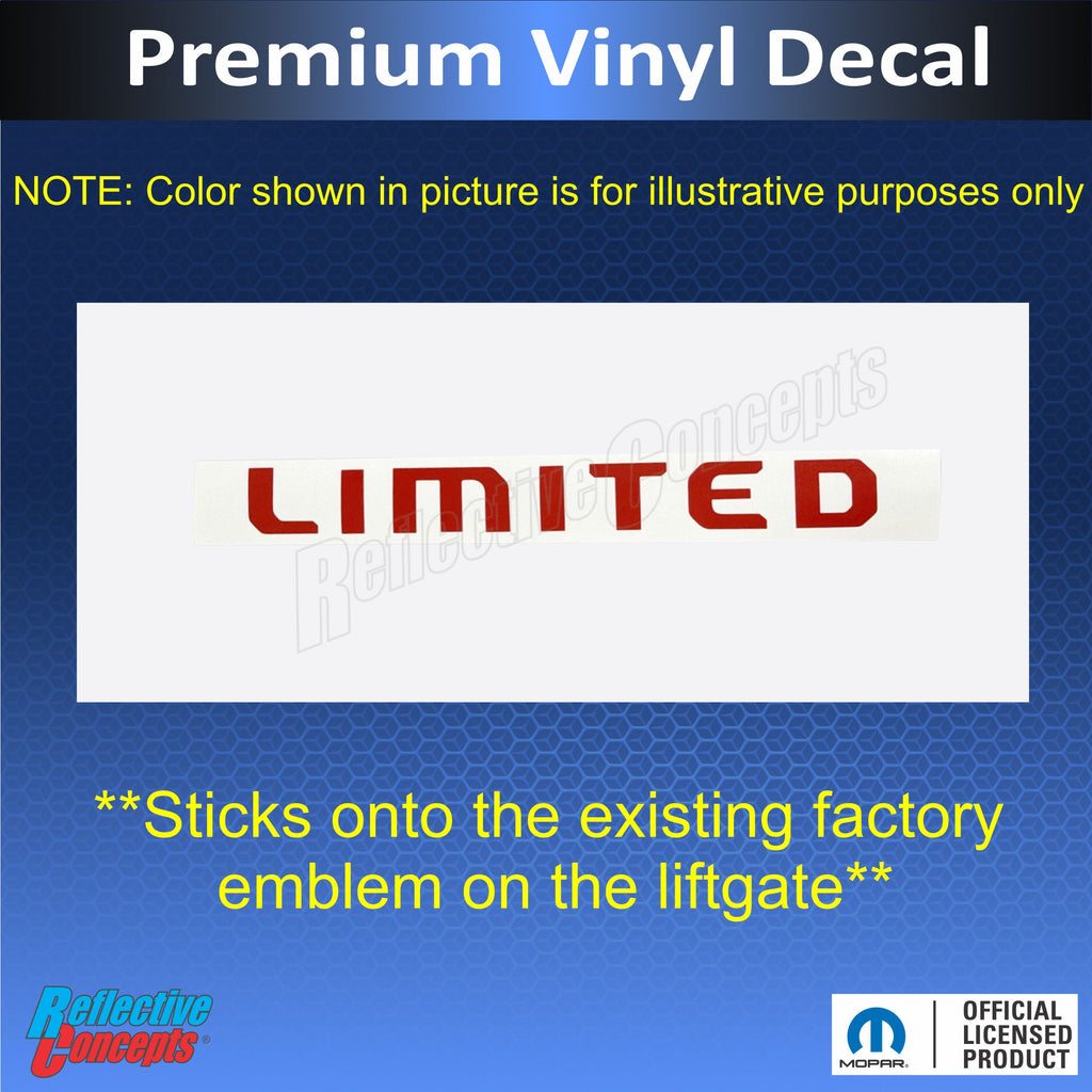 Vinyl decal sized and designed to overlay the flat front face of the LIMITED emblem on the lift gate.