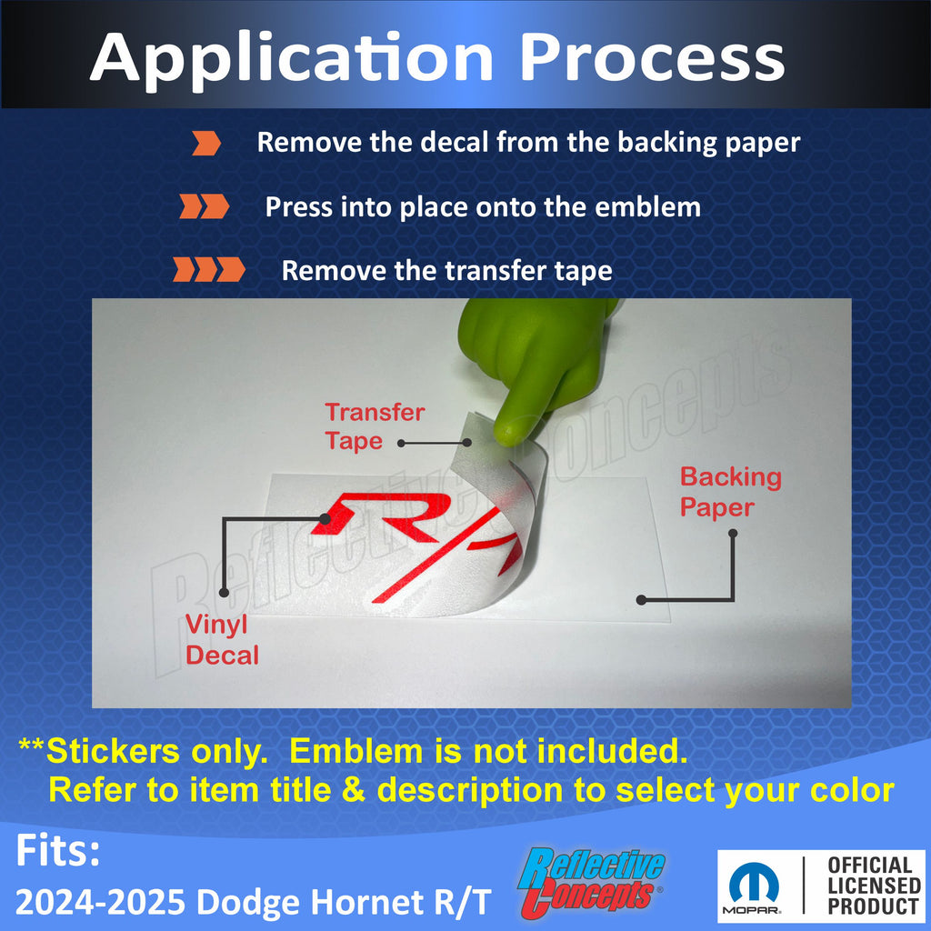 Vinyl decal designed to overlay the front face of the R/T emblem on the liftgate.