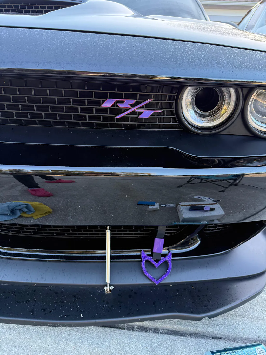Vinyl decal designed to inlay the flat surface of the indentation on the existing, factory R/T emblem on the grille.