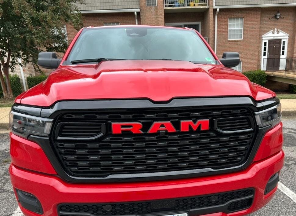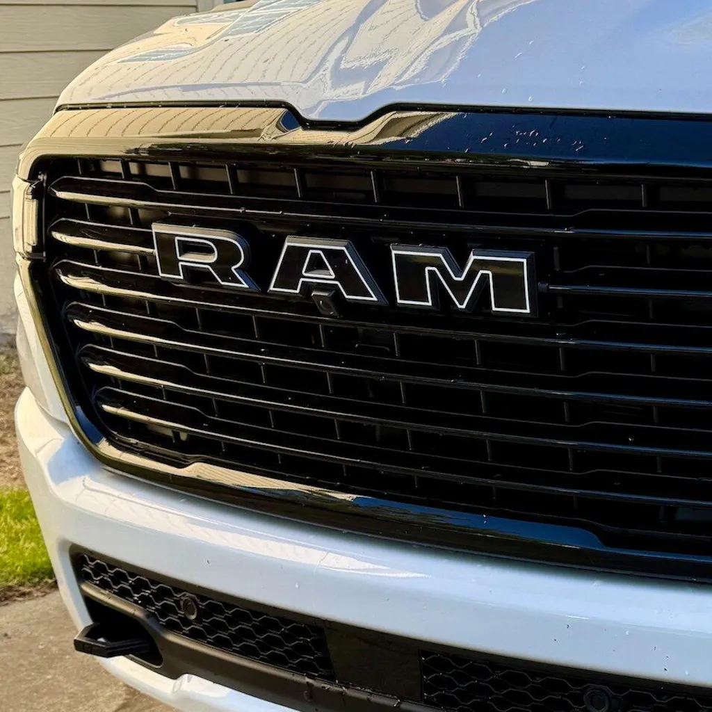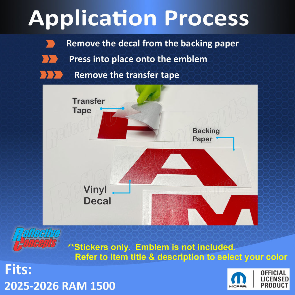 Vinyl decal designed to to be applied to the face of the factory RAM letters on the grille.