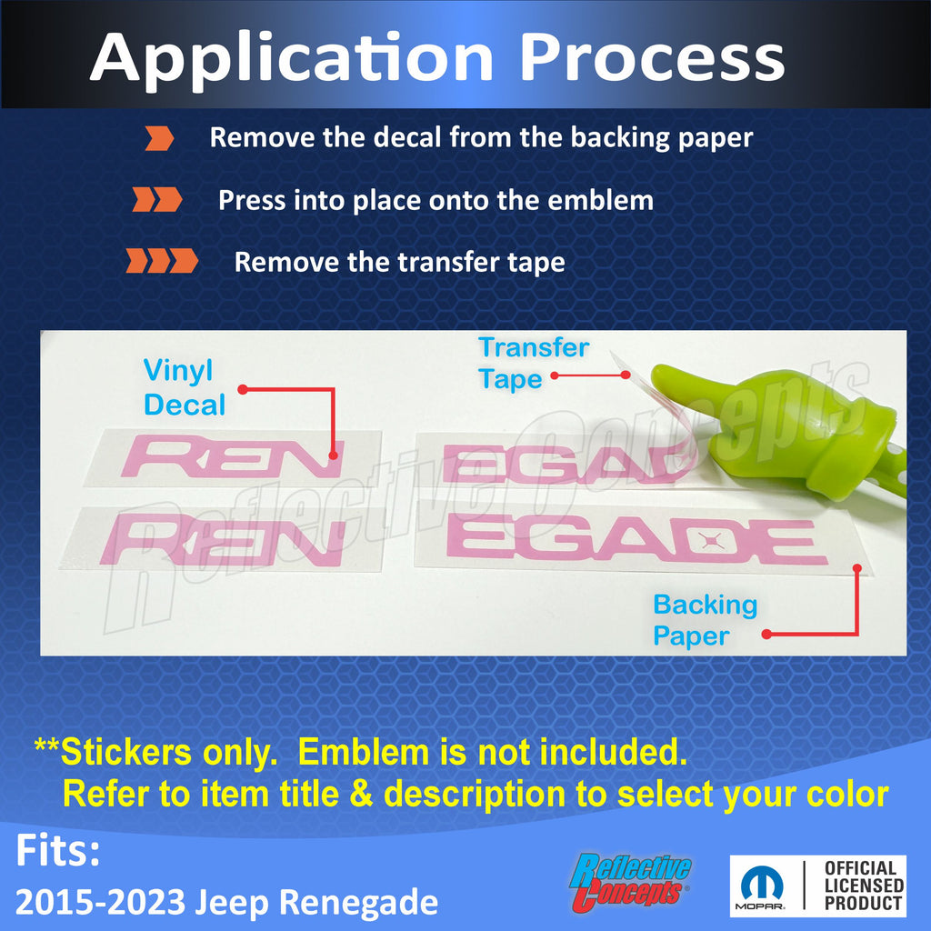 NOTE: This is a sale for a vinyl decal(sticker) only, not a replacement emblem. These are used to change the factory color from black to another color.