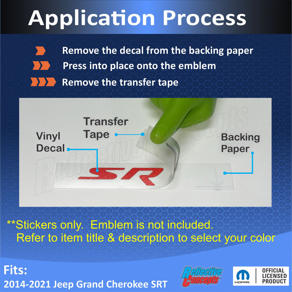 Vinyl decal sized to stick onto the face of the chrome SRT lettering on the steering wheel.