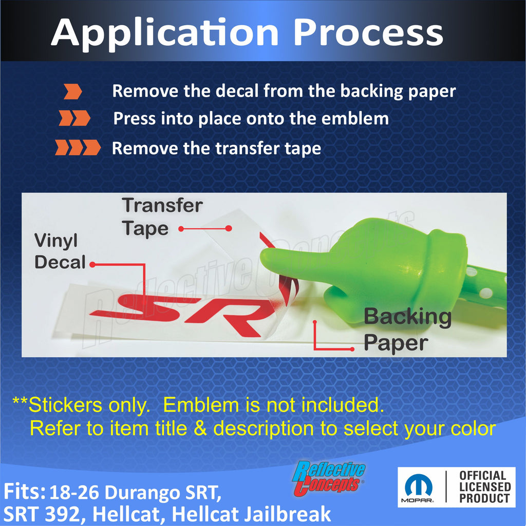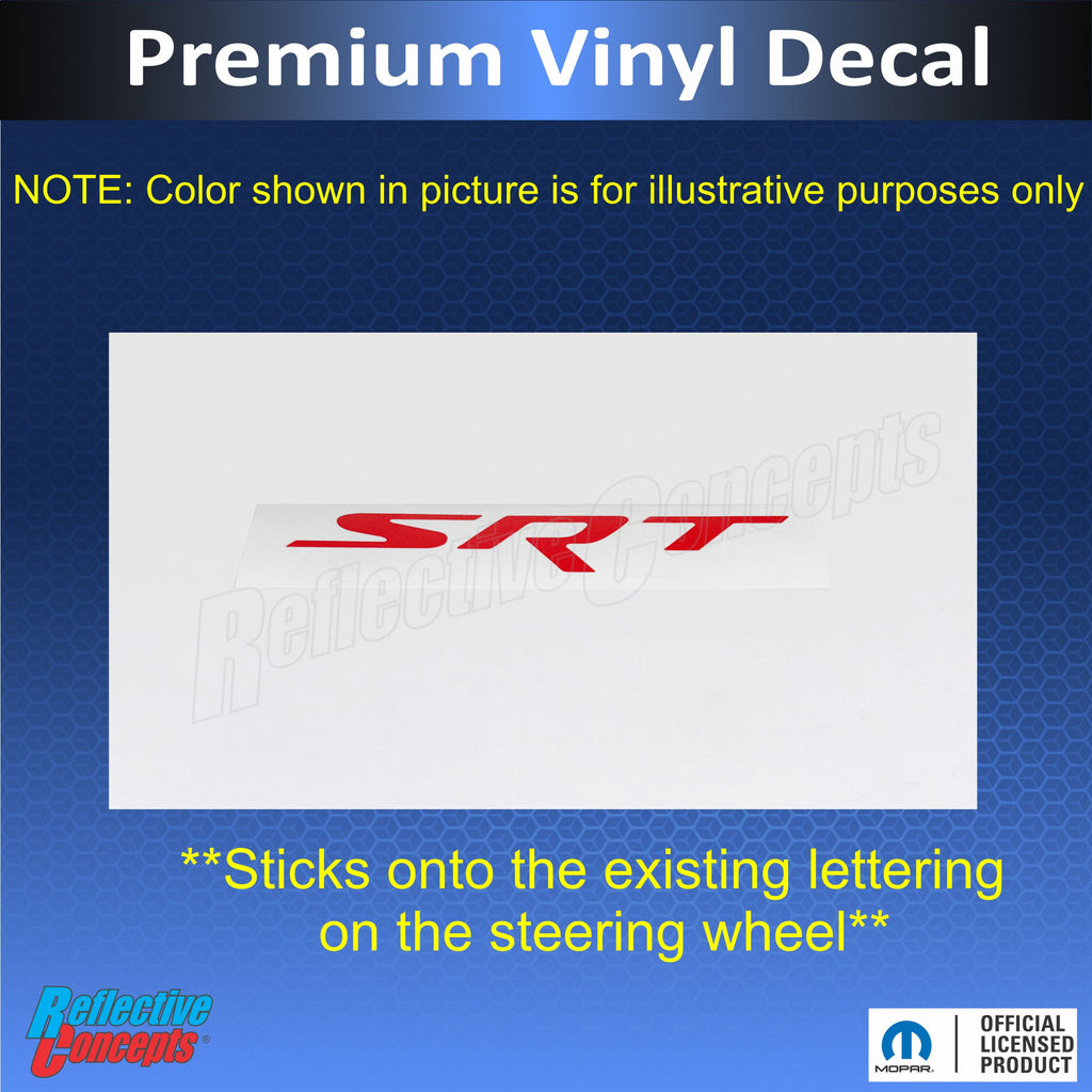 Vinyl decal sized to stick onto the face of the chrome SRT lettering on the steering wheel.