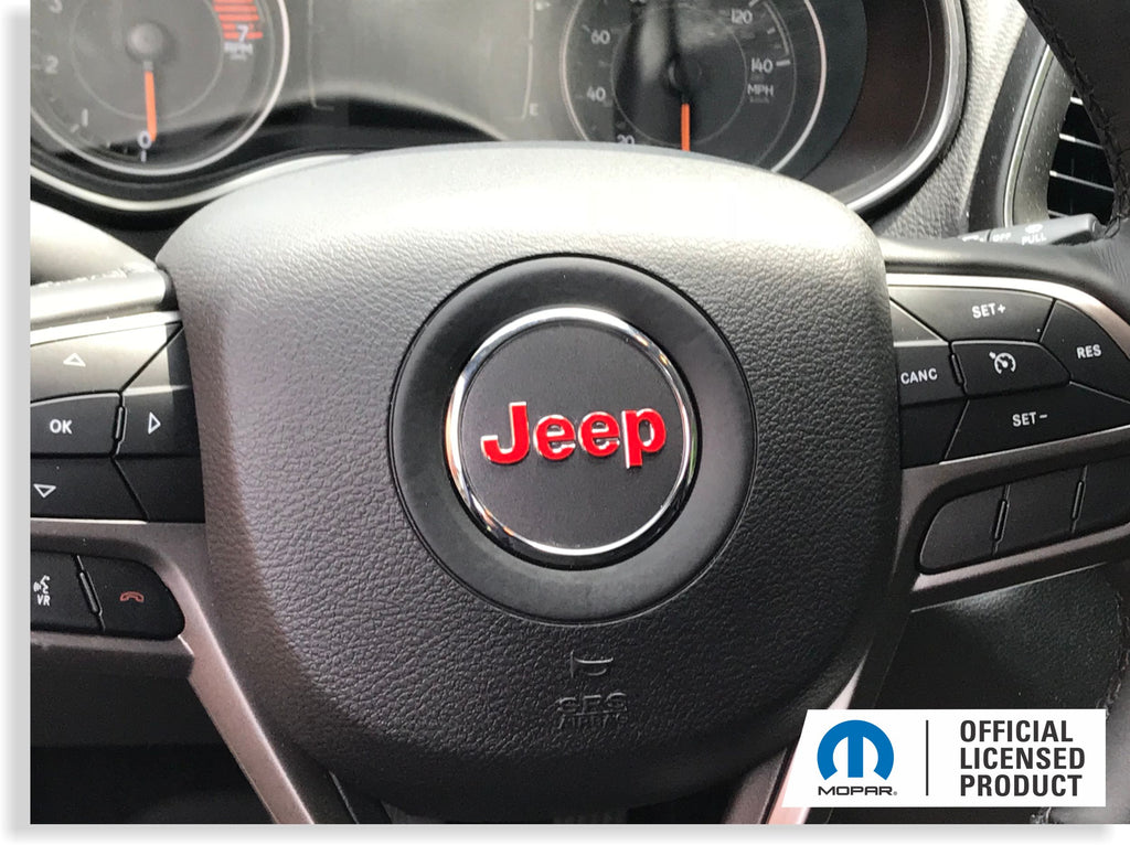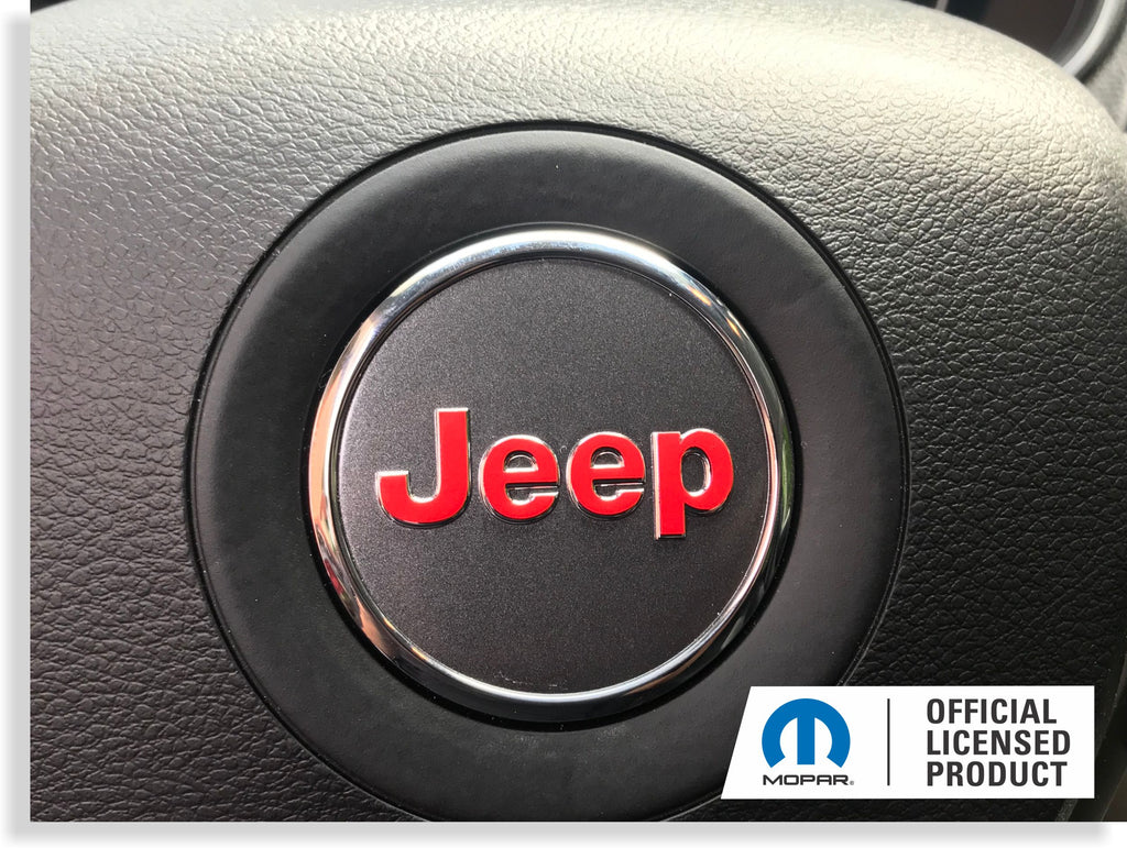 Vinyl decal sized to stick onto the chrome JEEP lettering on the airbag emblem.