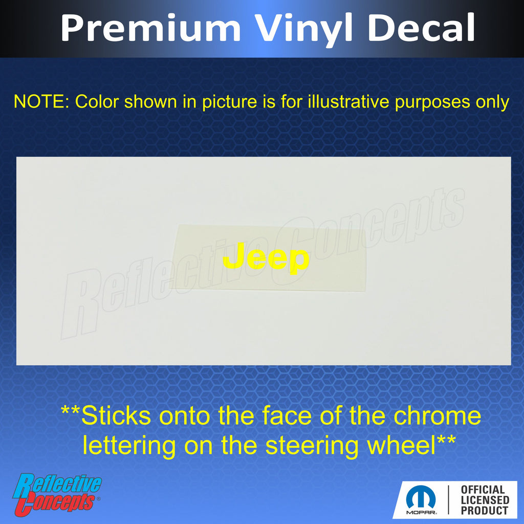 Vinyl decal sized to stick onto the chrome JEEP lettering on the airbag emblem.