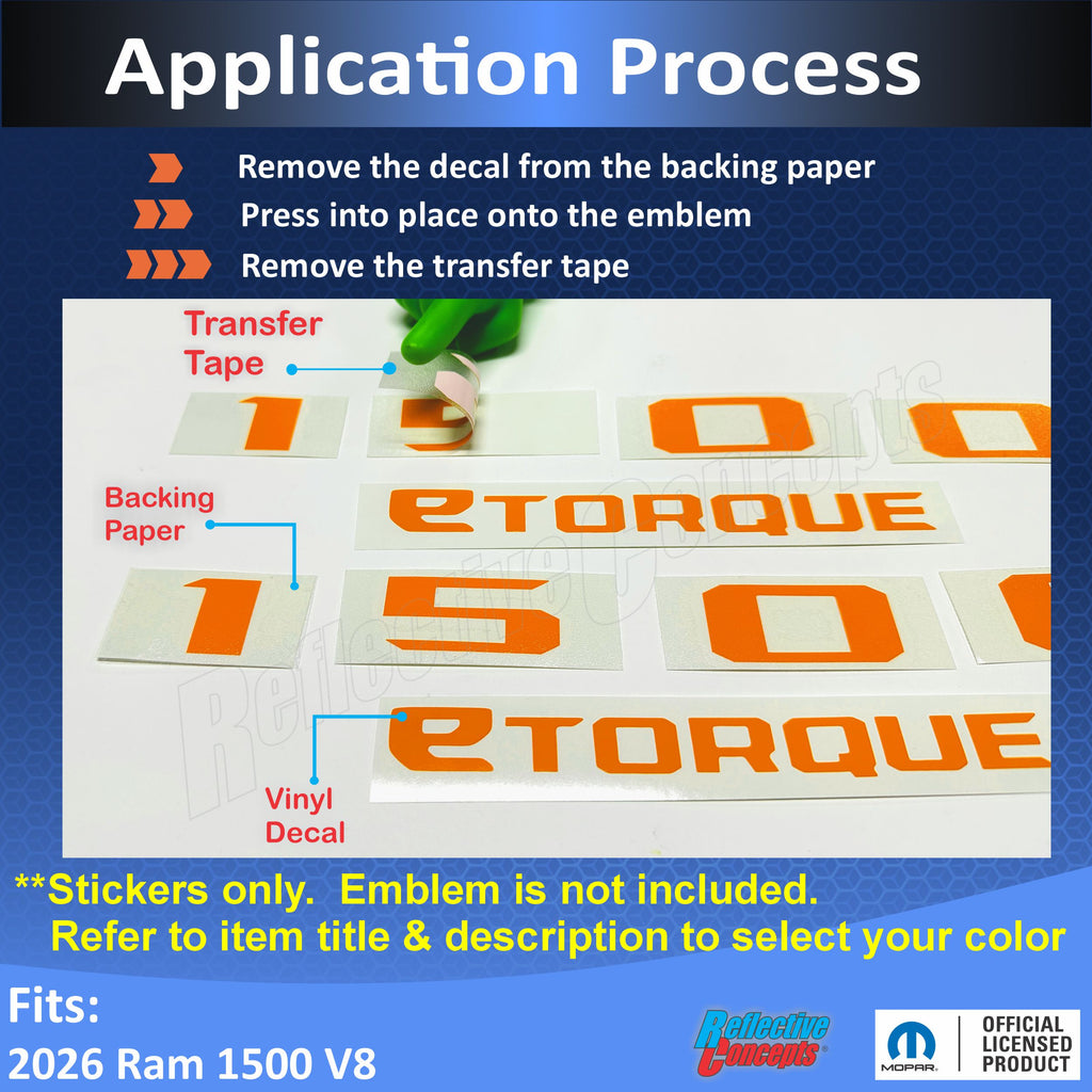 Vinyl decal sized and designed to overlay the face of the 1500 and over the colored section of the eTORQUE on the hood emblems.